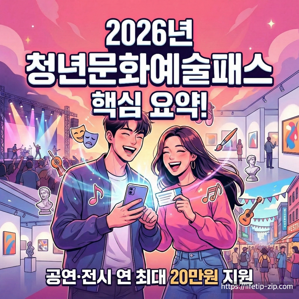 2026년 청년문화예술패스 신청이 2026년 2월 25일부터 시작됩니다. 만 19~20세 청년이라면 별도의 소득 기준 없이 누구나 신청할 수 있으며, 공연·전시·영화 관람에 사용 가능한 최대 15만 원의 문화 포인트를 받을 수 있습니다. 단, 지역별 예산이 정해져 있어 소진 시 조기 마감되는 선착순 방식으로 운영됩니다. 신청 조건, 혜택, 방법, 주의사항까지 공식 안내 기준으로 빠짐없이 정리했으니 아래 내용을 확인해주세요. 바쁘신 분들을 위해 한눈에 보는 요약 정보를 글 가장 하단에 적어두었으니 빠르게 확인해 보세요!